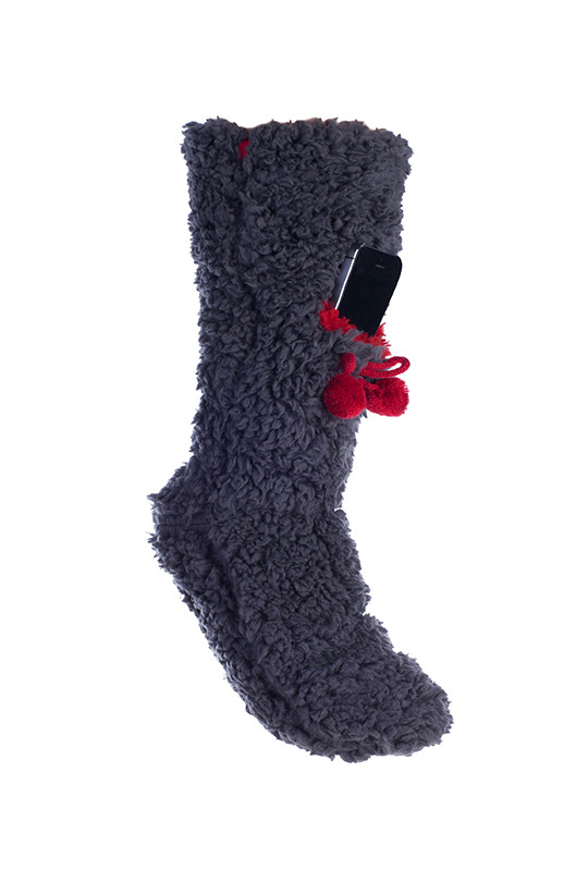 Minx NY VHT10450.CGR-L Lavender Infused Slipper Socks With Cell Phone, Charcoal Grey - Large