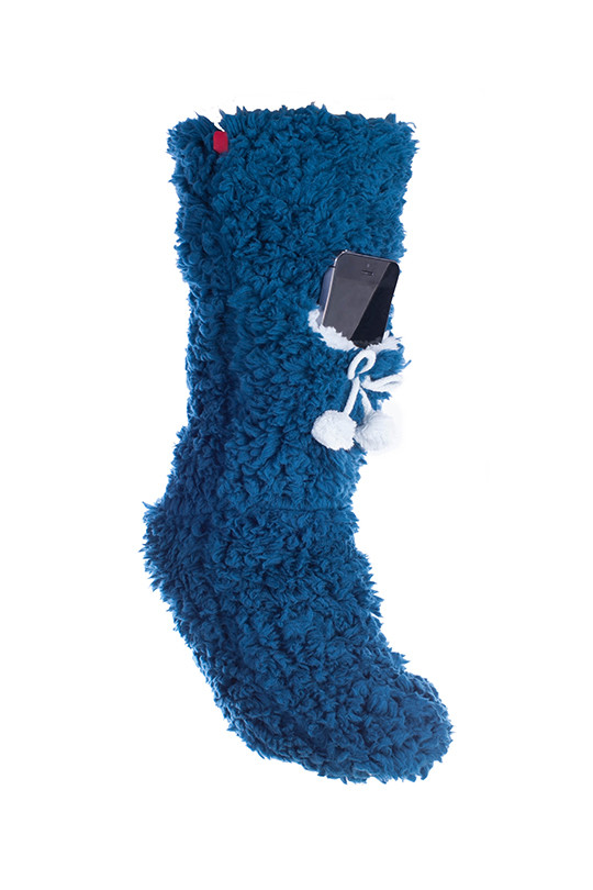 Minx NY VHT10450.TEL-L Lavender Infused Slipper Socks With Cell Phone, Teal - Large