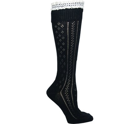 Minx NY VHT10502.NVY-L Knee High Socks With Lace And Buttons - Navy