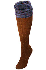 Minx NY VHT10559.BRN-L Speckled Wool Knee High Socks With Contrast Welt, Brown With Navy
