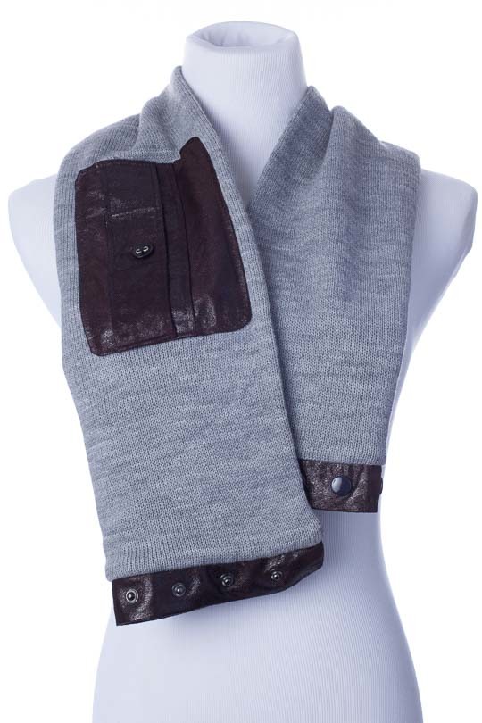 Minx NY VHT10613.BLK Wrap Scarf With Faux Leather Front Pocket - Black, OSFM