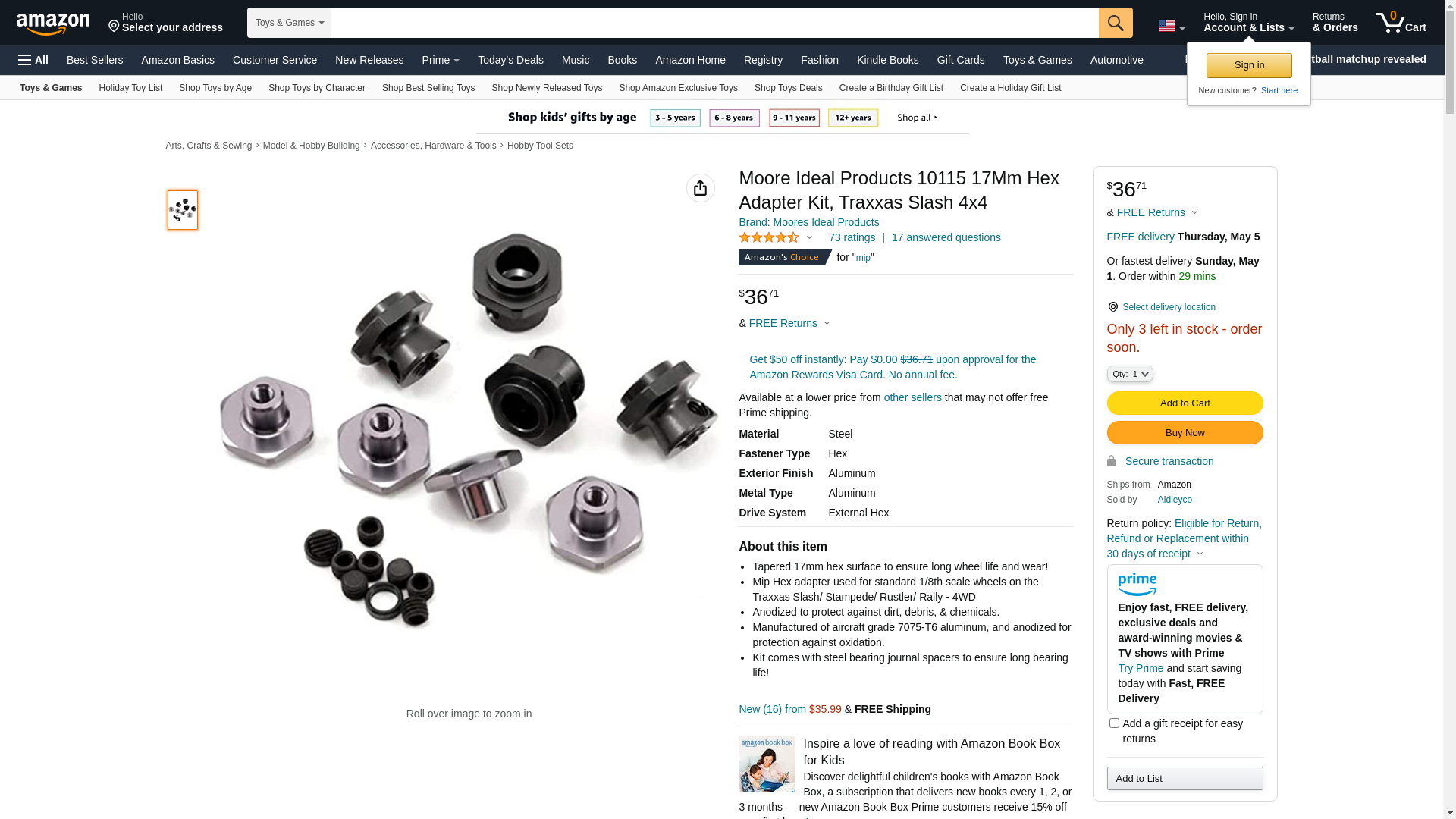 | Feature | 17mm Hex Adapter Kit: Slash 4x4 |