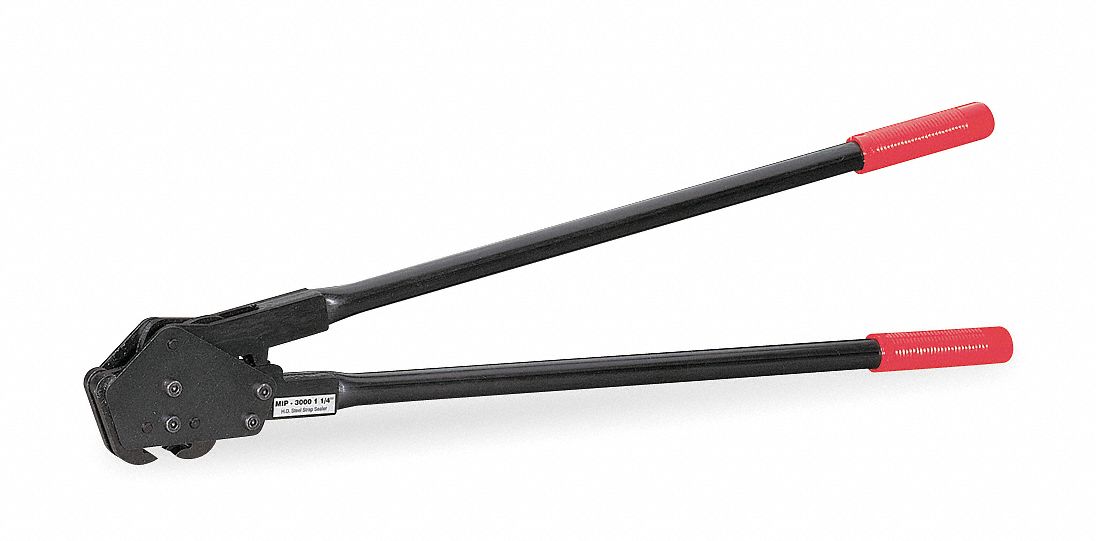 | Feature | Price For: Each For Use With: Steel Item: Steel Strapping Sealer For Strapping Thickness: 0.89mm Notch Type: Double Reverse Application: General Duty, Heavy Duty Uses with 0.025 to 0.044 Gauge Strapping, Flat Or Round Surfaces Style: Side Action Weight: 29 lb. For Strapping Width: 3/4" Country of Origin (subject to change): India |