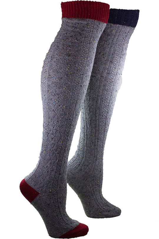 Minx NY VHT10620.GRY-L Wool Speckled Knee High With Contrast Welt - Black With Grey