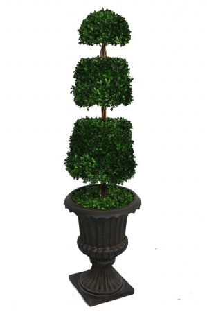 Minx NY VHX103213 58 in. Tall Preserved Natural Spiral Boxwood Cone Topiary in 16 in. Fiberstone Planter