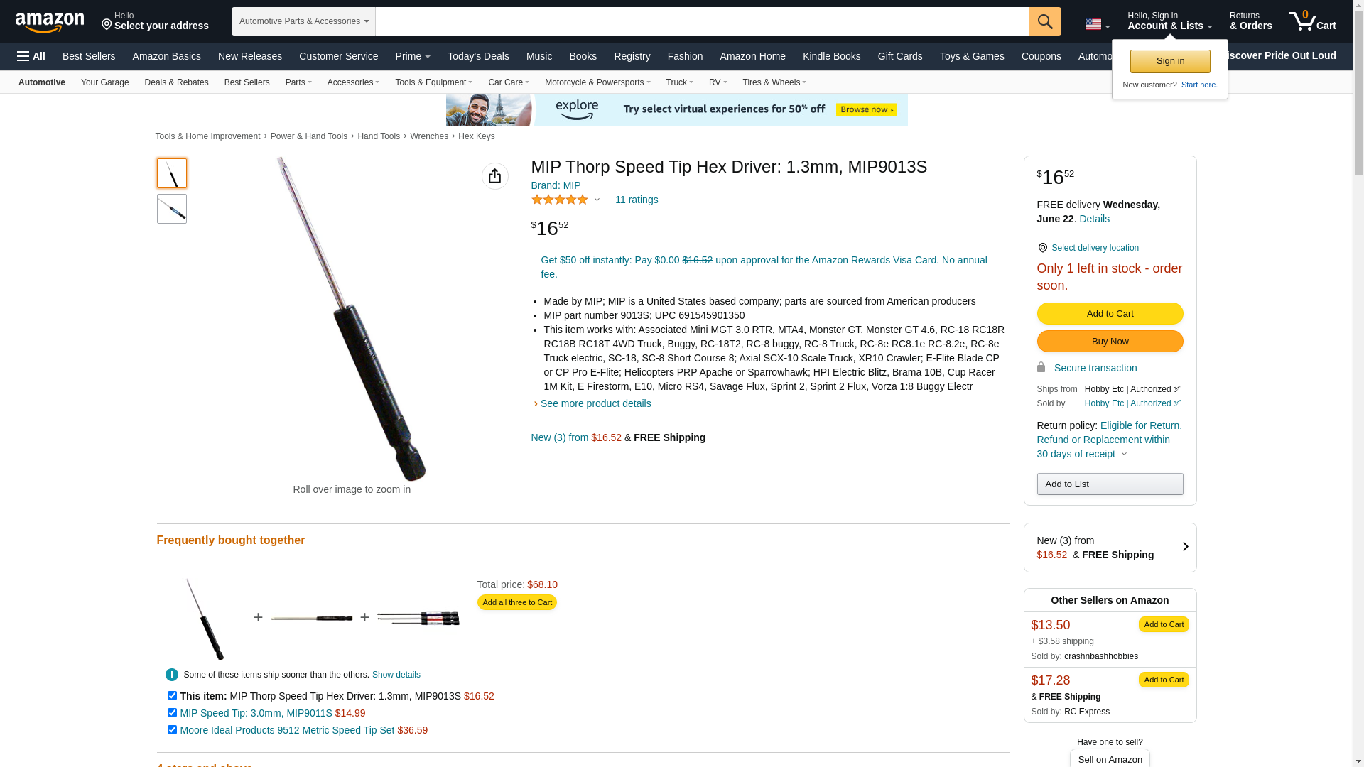 ![]() RC Planet | MIP9013S | 1 | -2 | 1 | 1 @ $13.50 |