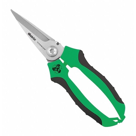 Miracle-Gro Titanium Bonded 8 in. Garden Snip features micro-serrated blades that grip and cut and a convenient integrated wire cutter. Titanium Bonded blades are 3x harder than untreated steel and will stay sharper longer. Also features ergonomic grips and an internal spring system for reduced hand fatigue. A truly green tool - the handles and grips are made from recycled materials and packaging from post-consumer content. Corrosion and adhesive resistant. Locks for Safety. Lifetime Warranty. Green/Black handles. Powered by Clauss.