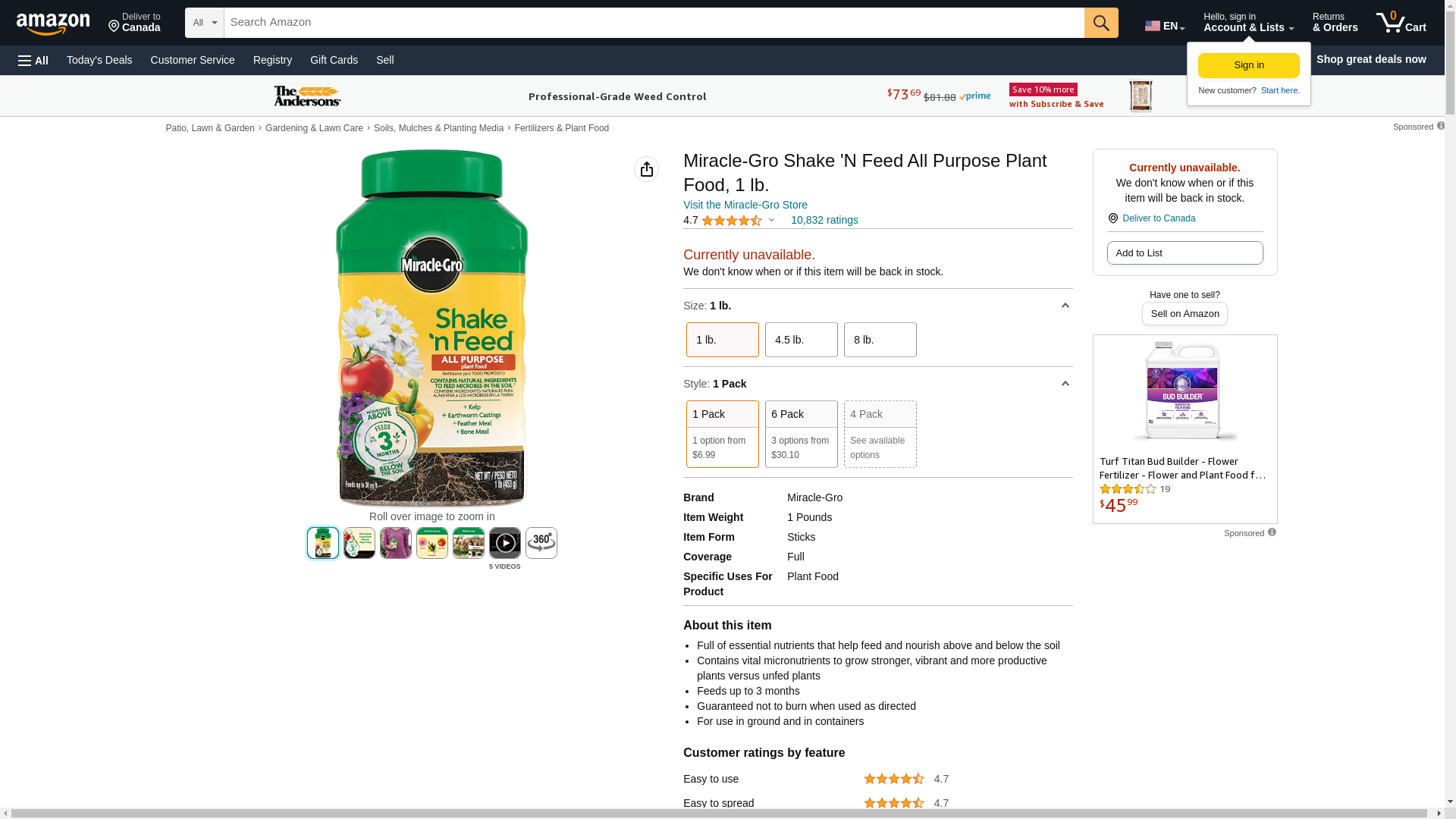 Miracle-Gro Shake 'N Feed All Purpose Plant Food, Plant Fertilizer, 1 lb. (6-Pack)