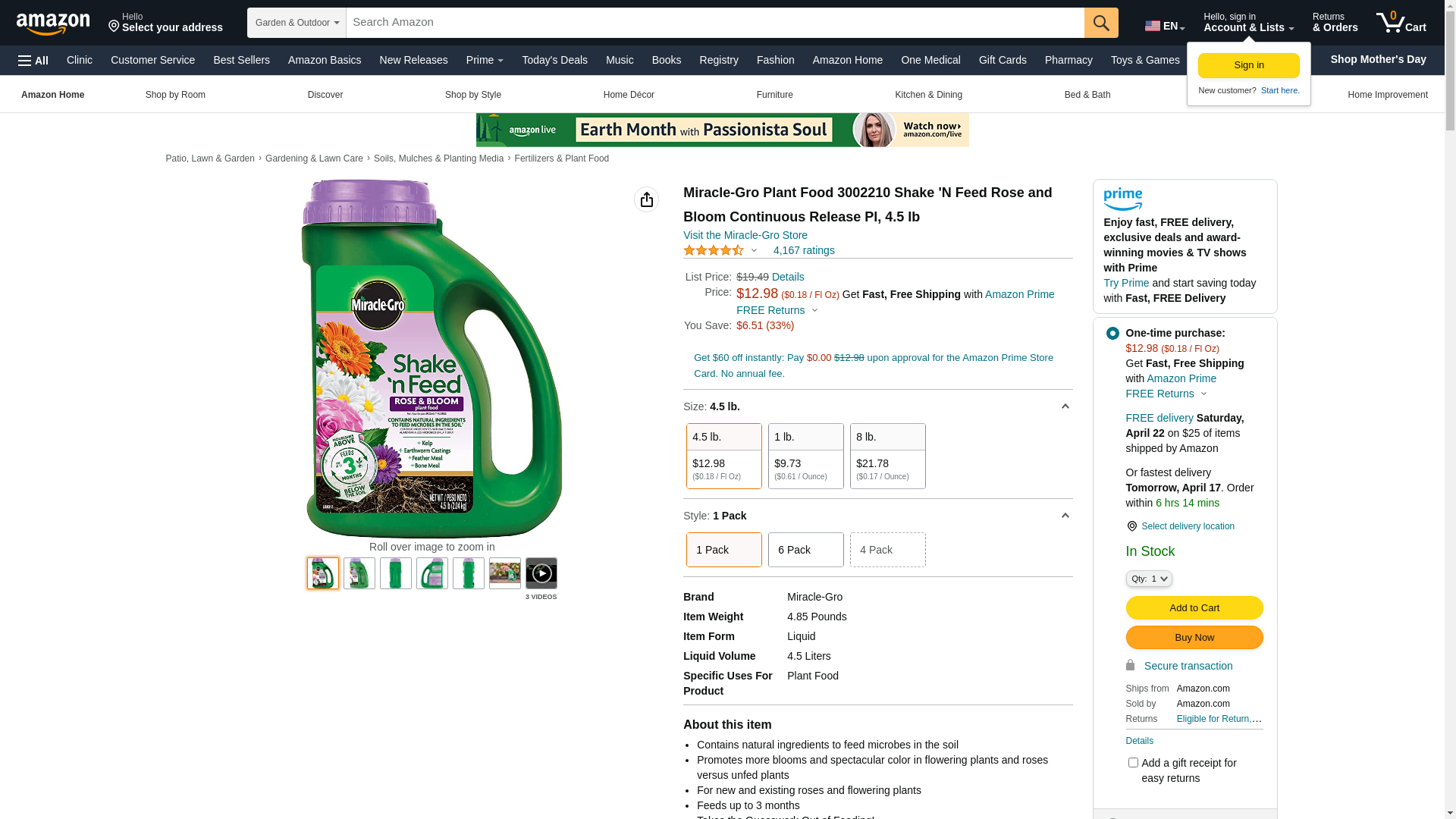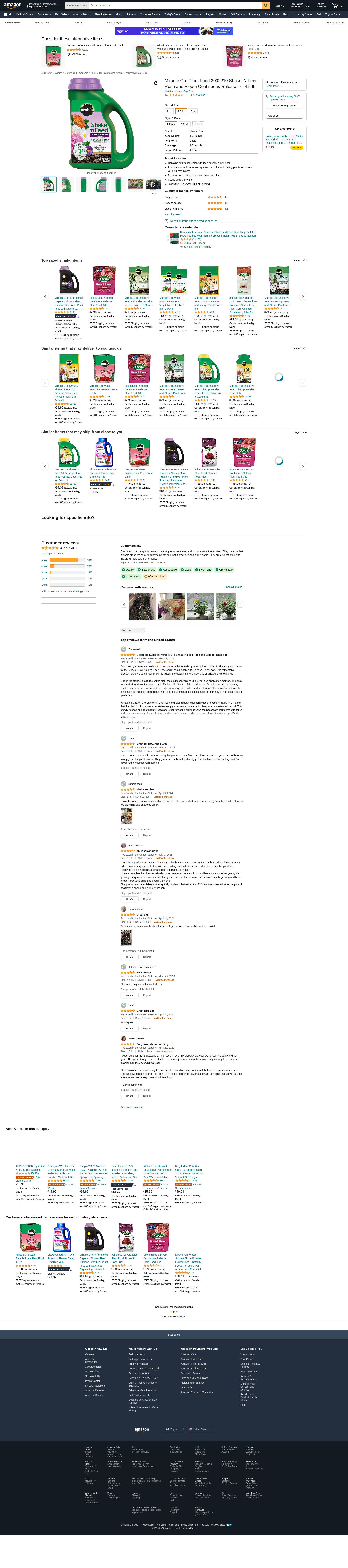 Miracle-Gro Plant Food 3002210 Shake 'N Feed Rose and Bloom Continuous Release Pl, 4.5 lb