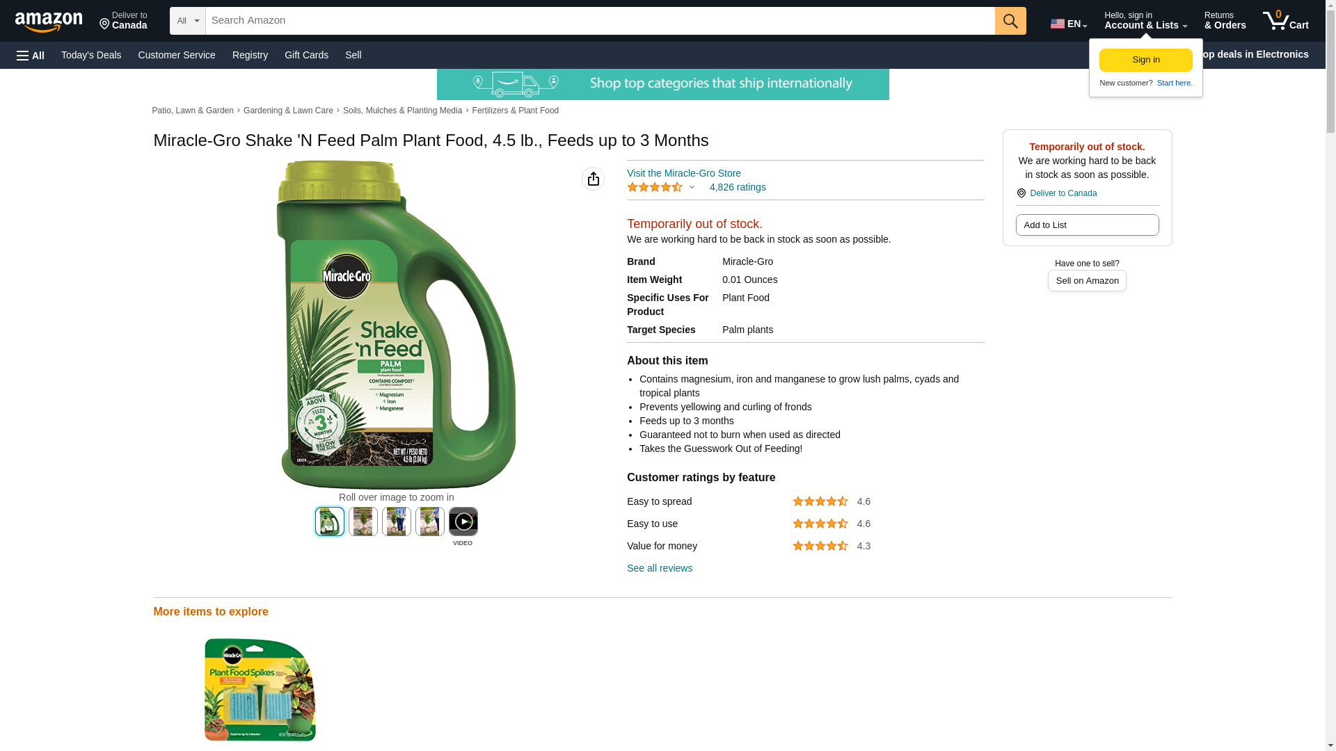 Miracle-Gro 3002910 Shake 'N Feed Continuous Release Palm Plant Food, 4.5 lb, Brown/A: Maxedbuy.com