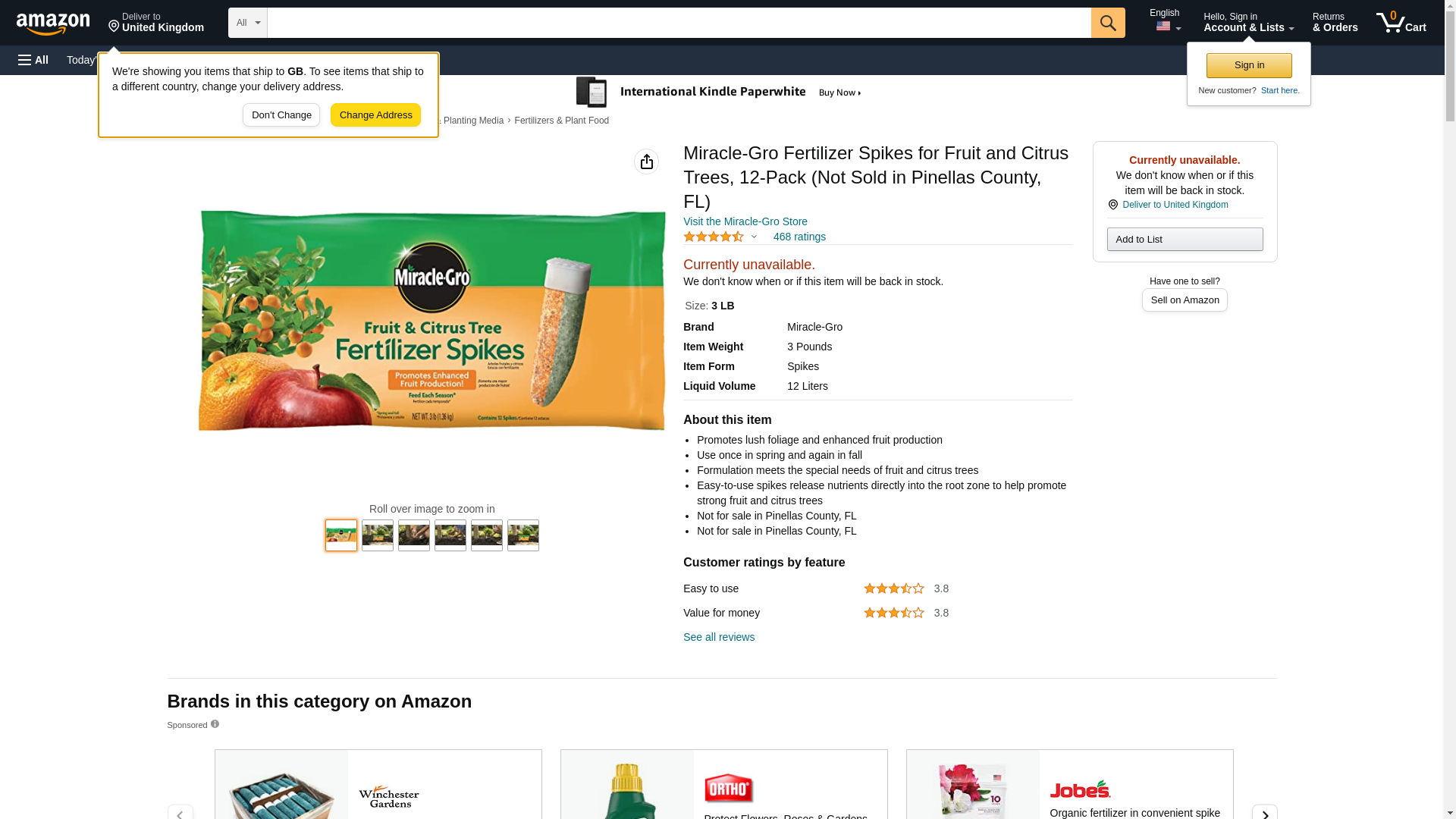 Brand Name: Miracle-Gro *Plant Type: Fruit and Citrus *Product Type: Fertilizer Spikes *Product Form: Spikes *Container