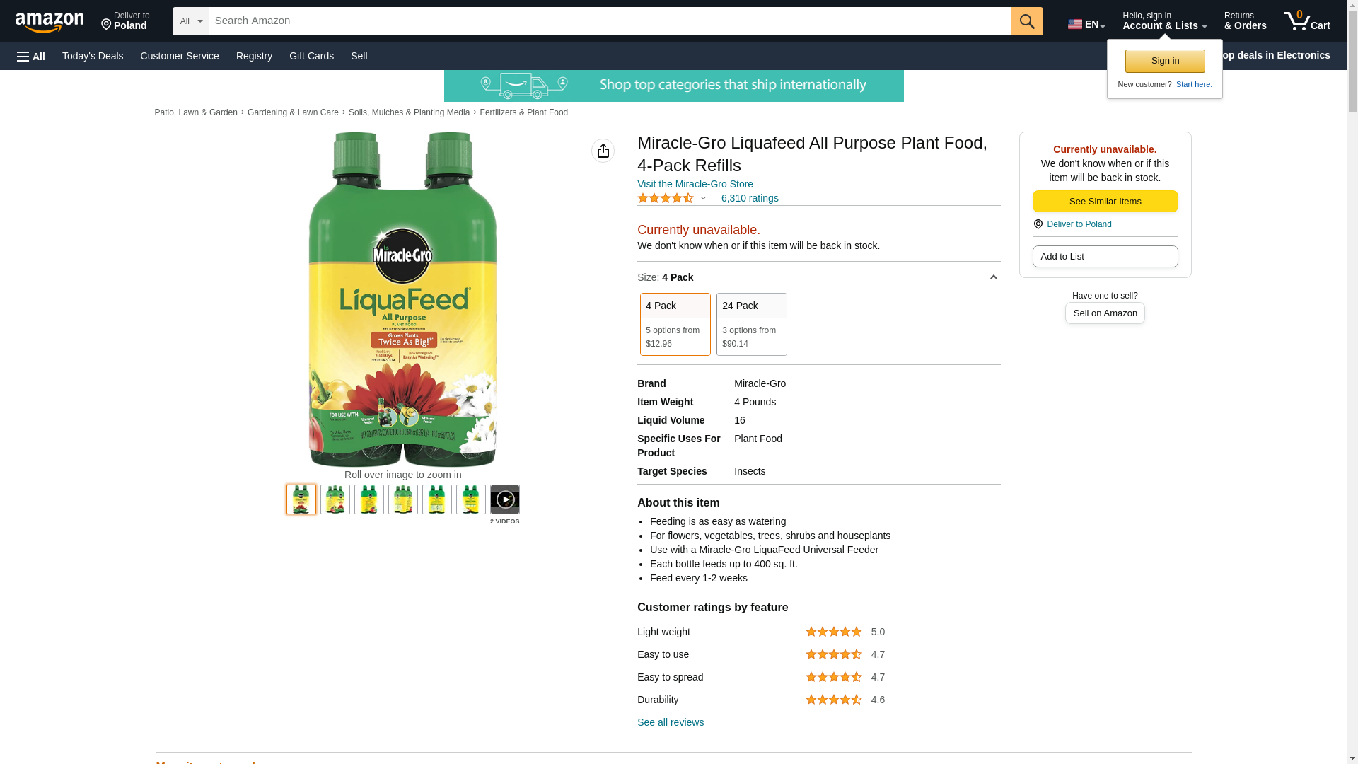Miracle-Gro LiquaFeed All Purpose Plant Food Refills, Plant Fertilizer, 16 fl. oz., 4 Bottles/Pack (6-Pack)