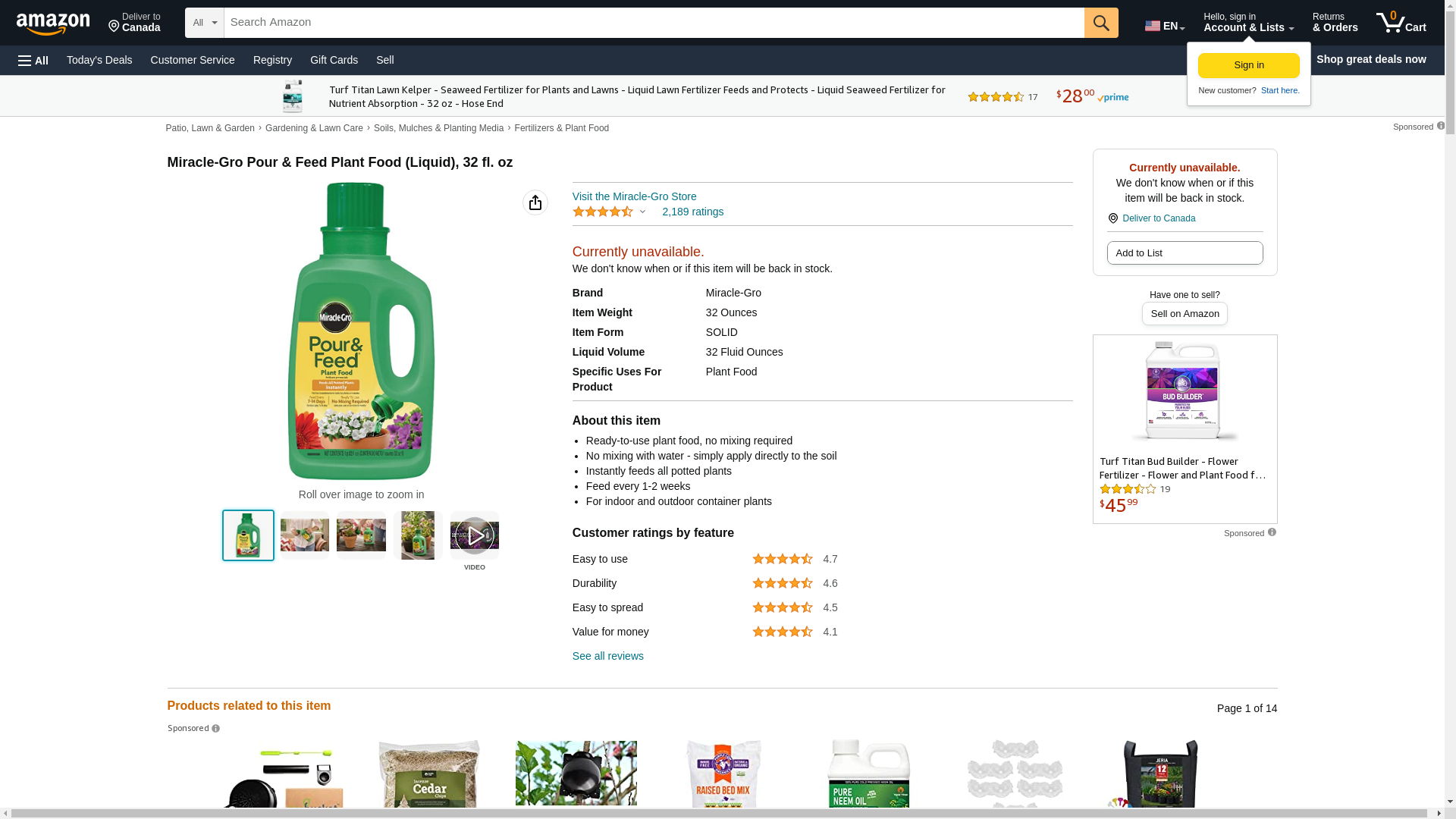 - Miracle-Gro Plant Food, 32 oz Net Content