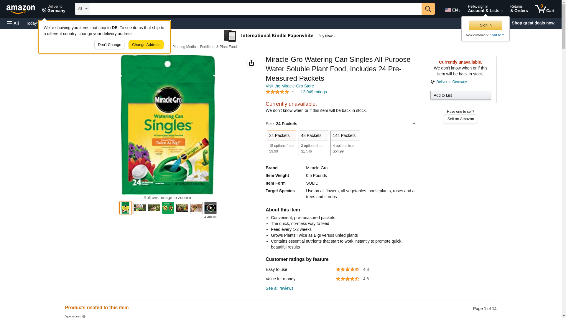 Miracle-Gro Watering Can Singles - Includes 24 Pre-Measured Packets (10.24 ounces) of All Purpose Plant Food (Plant Fertilizer)