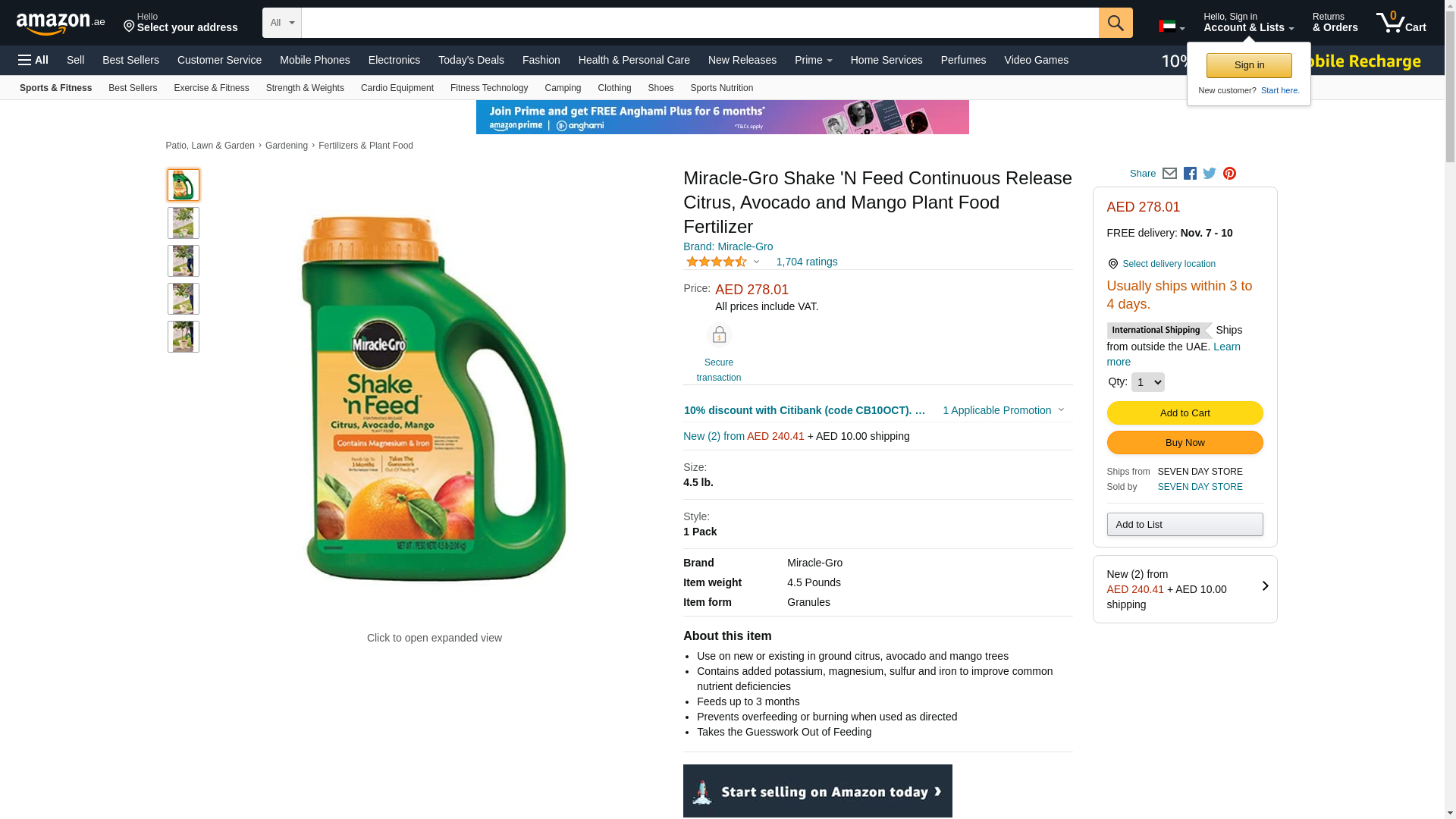Miracle-Gro Shake 'N Feed Citrus, Avocado, Mango Plant Food