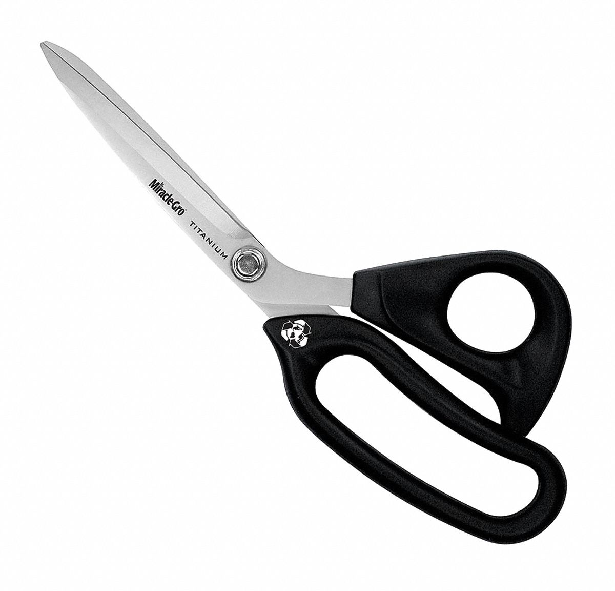 Miracle-Gro Titanium Bonded Ultraflex Shear features an ambidextrous ergonomic handle with oversized ring and bow for reduced hand fatigue. Titanium Bonded blades are 3x harder than untreated steel and will stay sharper longer. Also features an industrial strength stainless steel core. Fully adjustable tension. A truly green tool - the handles are made from recycled materials and packaging from post-consumer content. Corrosion and adhesive resistant. Lifetime Warranty. Black handles. Powered by Clauss.