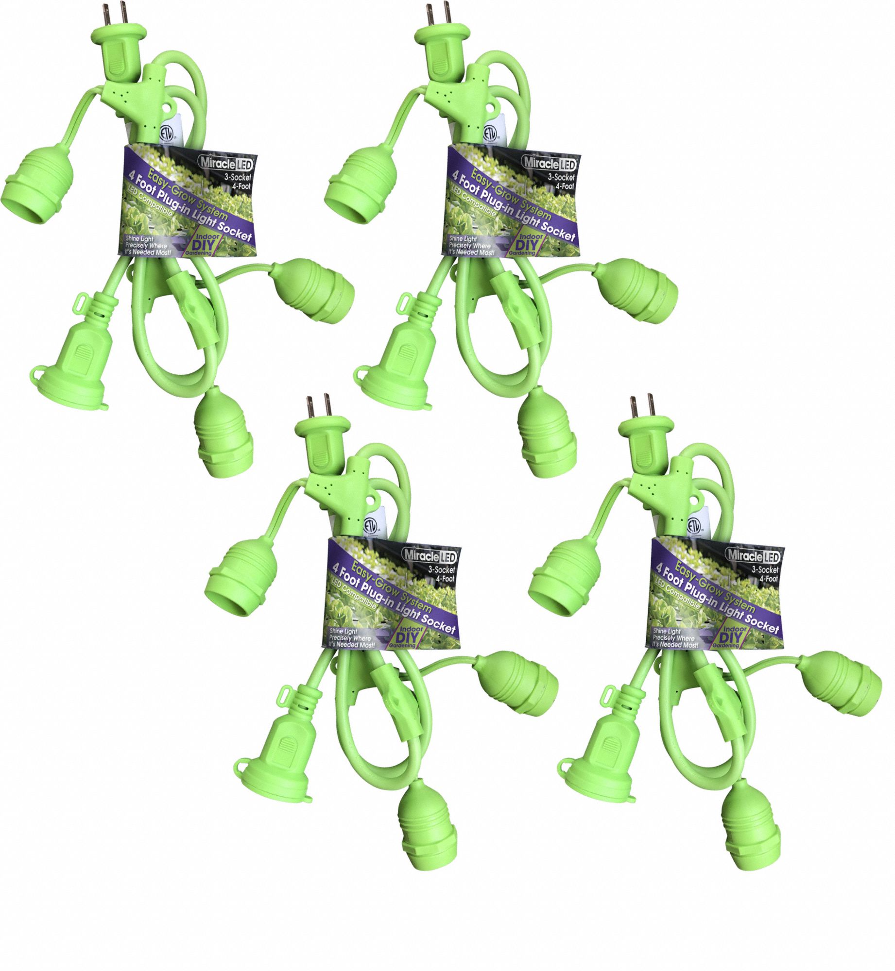As an Amazon Associate, we earn from qualifying purchases. Miracle Led Miracle Led . 601839 Gallery Attributes Brand name, Manufacturer name, Manufacturer, Extra Product NameMiracle Led Attribute003 Socket String Light Fixture for Grow Lights, 4 Foot Length, PK4 Attribute01, Attribute17, Attribute244 ft Attribute02, Attribute10, Attribute256 in Attribute03, Attribute191 1/2 in Attribute04Miracle LED Grow Light Bulbs Attribute05, Attribute09120 W Attribute0620,000 hr Attribute07CSA C22.2, ETL Listed, UL 153 Attribute08Green Attribute11, Attribute311 yr Attribute1212 Attribute13(4) 4 ft Cords, (4) Linkable Plugs, (4) Three Socket E26 Plug-In Light Fixtures Attribute14, Voltage110 to 220 V Attribute15Plug-In Light Socket Attribute168 Fixtures Attribute180 to 12 in Attribute20Cylindrical Attribute21Moulded Mounting Loop Attribute22Yes Attribute2340 W Attribute26No Reflector Attribute27No Attribute28Medium Screw (E26) Attribute29A19 Attribute30Pendant Attribute32, Attribute333 Attribute34Medium (E26) Attribute35China AttributeKey00Item AttributeKey01Length AttributeKey02Width AttributeKey03Height AttributeKey04For Use With AttributeKey05Watts AttributeKey06Rated Life AttributeKey07Standards AttributeKey08Housing Color AttributeKey09Max. Fixture Wattage AttributeKey10Nominal Width AttributeKey11Warranty AttributeKey12Lamp Quantity AttributeKey13Includes AttributeKey14Voltage AttributeKey15Description/Special Features AttributeKey16Linkable Up To AttributeKey17Nominal Length AttributeKey18Suggested Fixture Mounting Height AttributeKey19Overall Height AttributeKey20For Bulb Shape AttributeKey21Mounting Style AttributeKey22Linkable AttributeKey23For Max. Bulb Wattage AttributeKey24Overall Length AttributeKey25Overall Width AttributeKey26Reflector Type AttributeKey27Bulb Included AttributeKey28For Bulb Base Type AttributeKey29For Bulb Type AttributeKey30Fixture Type AttributeKey31Manufacturers Warranty Length AttributeKey32Number of Light Bars AttributeKey33Number of Lightheads AttributeKey34Bulb Base Type AttributeKey35Country of Origin (subject to change) DimensionUnitinch GraingerSku61KV56 UPC810065871305 UnitOfMeasurePK Weight3.9 WeightUnitlbs atoms4 cali_prop65_orglabel, cali_prop65_whtlabelFalse countryOfOriginCN extendedLead9 extendedQty-2 height, width7 jsonUrlData924526ffbdad25e5923b length8 moq, multiple, tierMinQty11 MPN601839 qtyInStock0 qtyInStockOverrideDrop Ship SKUG301113604 tierPrice187.00 urlhttps://www.zoro.com/miracle-led-grow-lights-110-to-220-v-40-w-pk4-601839/i/G301113604/ Distributor offers SellerSKUMOQIn stockMultiplePrices ZoroG301113604111 @ $87.00 Grainger61KV56111 @ $98.21