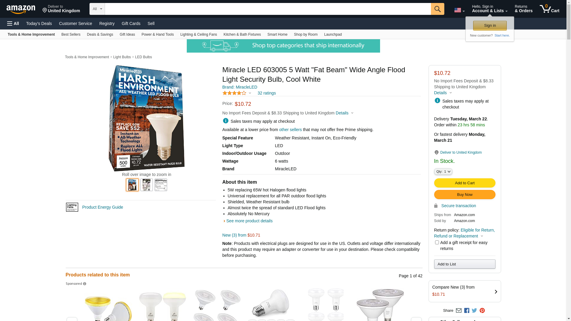 | Feature | 5W replacing 65W hot Halogen flood lights |
