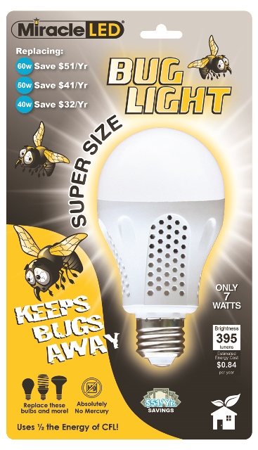 MiracleLED 605014 7 Watt Super Bug Light 395 Lumens Bug Free Porch and Patio Light Yellow