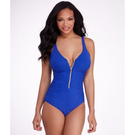 Miraclesuit Solid Ziptress Wire-Free One-Piece, 14, Electric Blue
