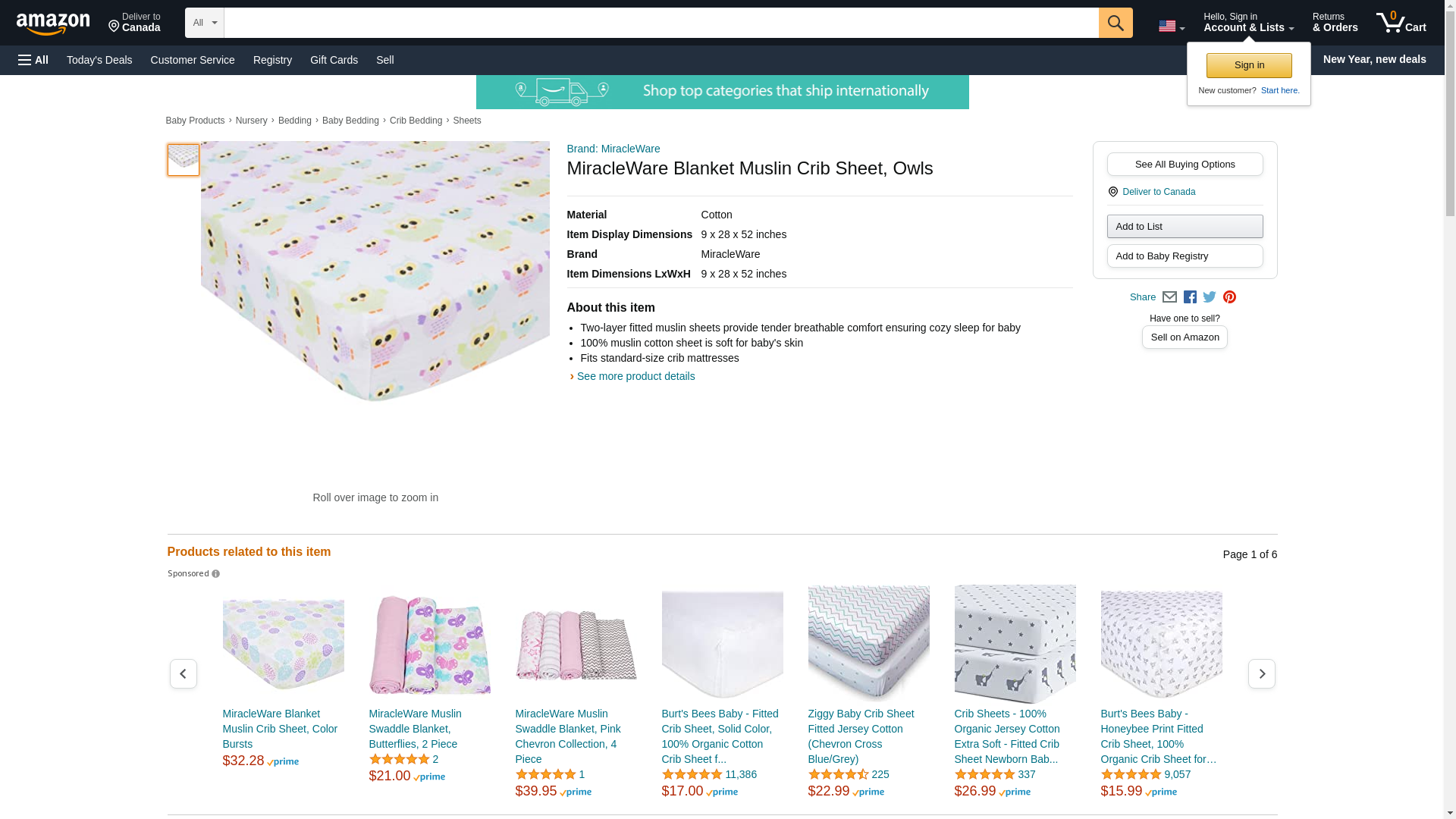 MiracleWare Blanket Muslin Crib Sheet, Owls