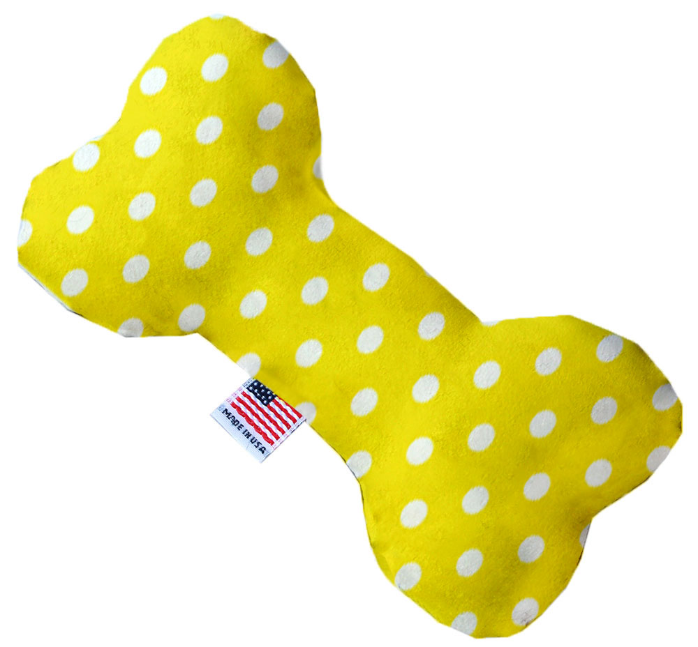 Mirage Pet Products Yellow Polka Dots 10 inch Bone Dog Toy