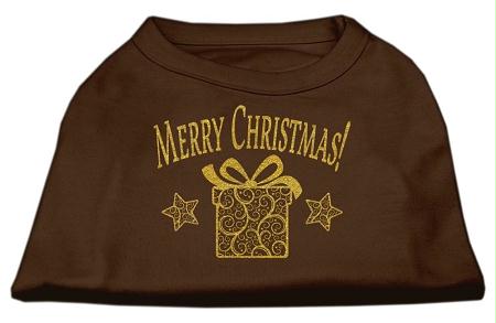 Mirage Pet Products 51-132 MDBR Golden Christmas Present Dog Shirt Brown Med - 12