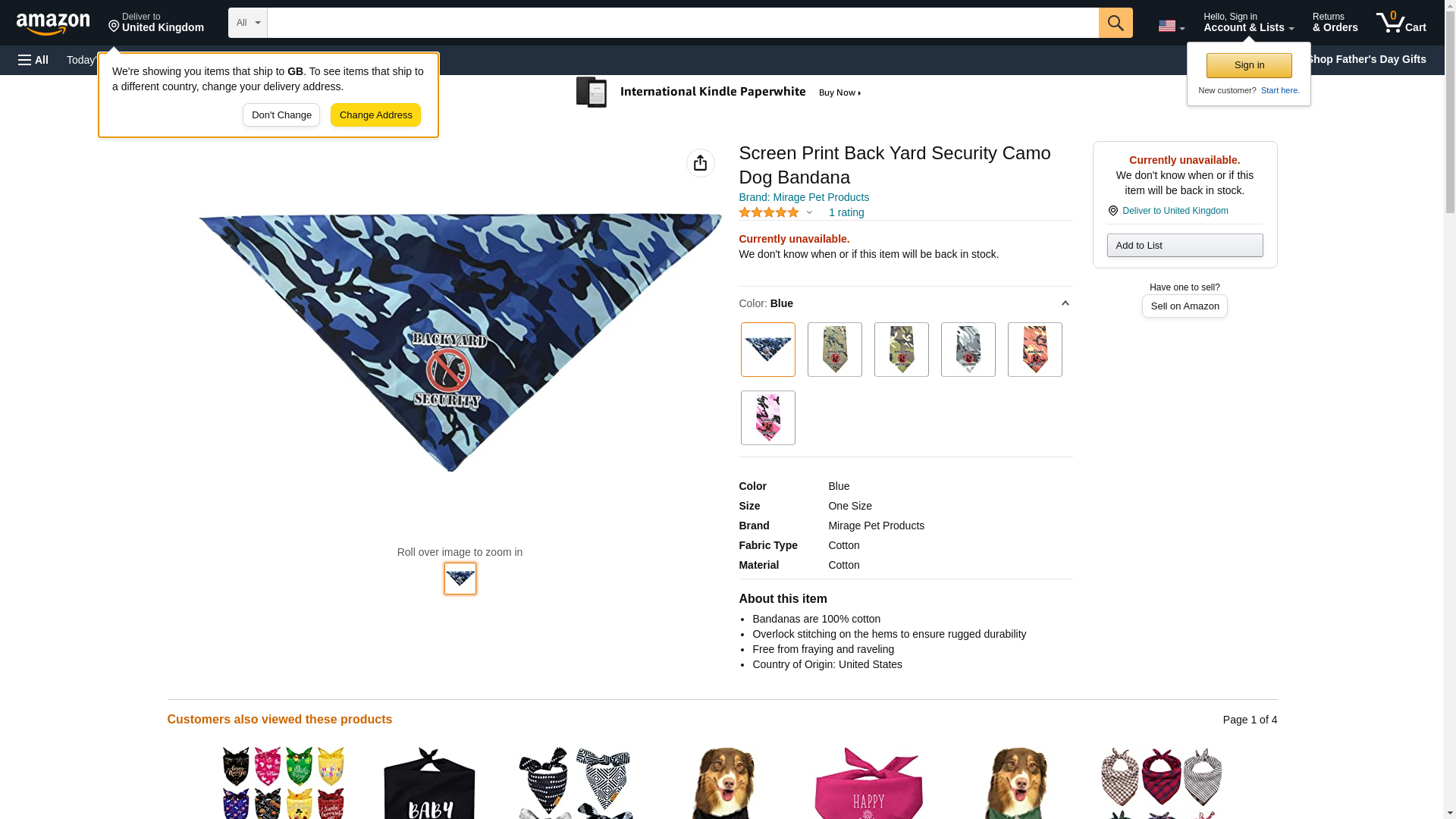 Mirage Pet Products Back Yard Security Screen Print Bandana Blue Camo, One Size