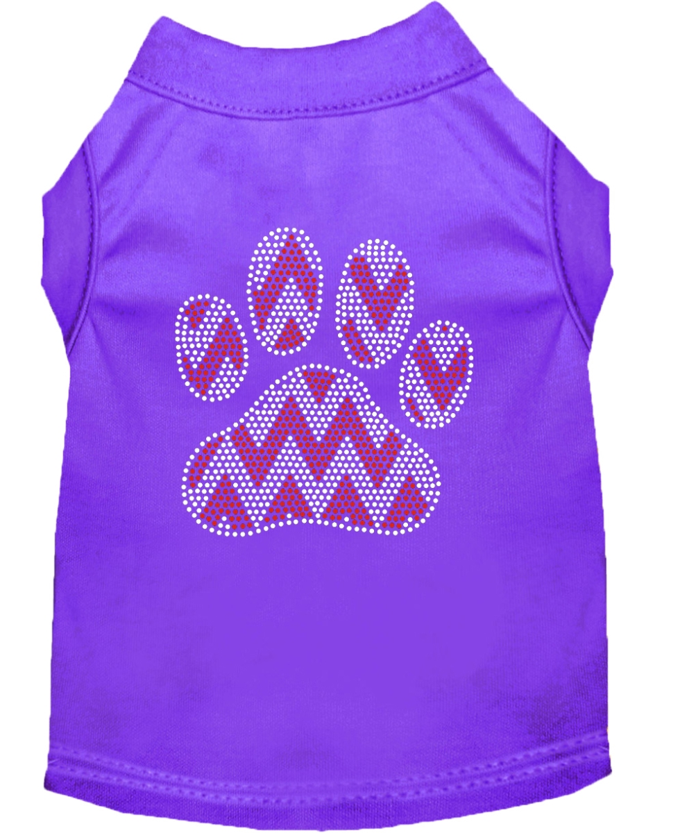 Candy Cane Chevron Paw Rhinestone Dog Shirt Purple Sm 10