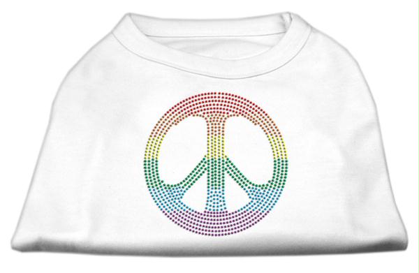 Mirage Pet Products 52-70 XSWT Rhinestone Rainbow Peace Sign Shirts White XS - 8