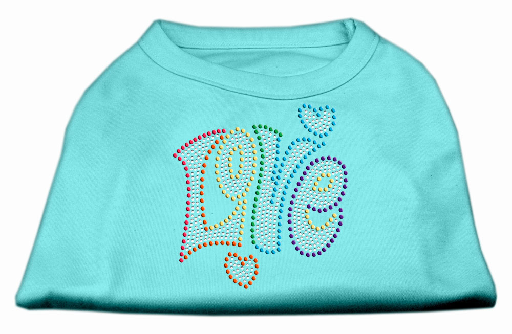 Mirage Pet Products 10" Technicolor Love Rhinestone Pet Shirt, Small, Aqua