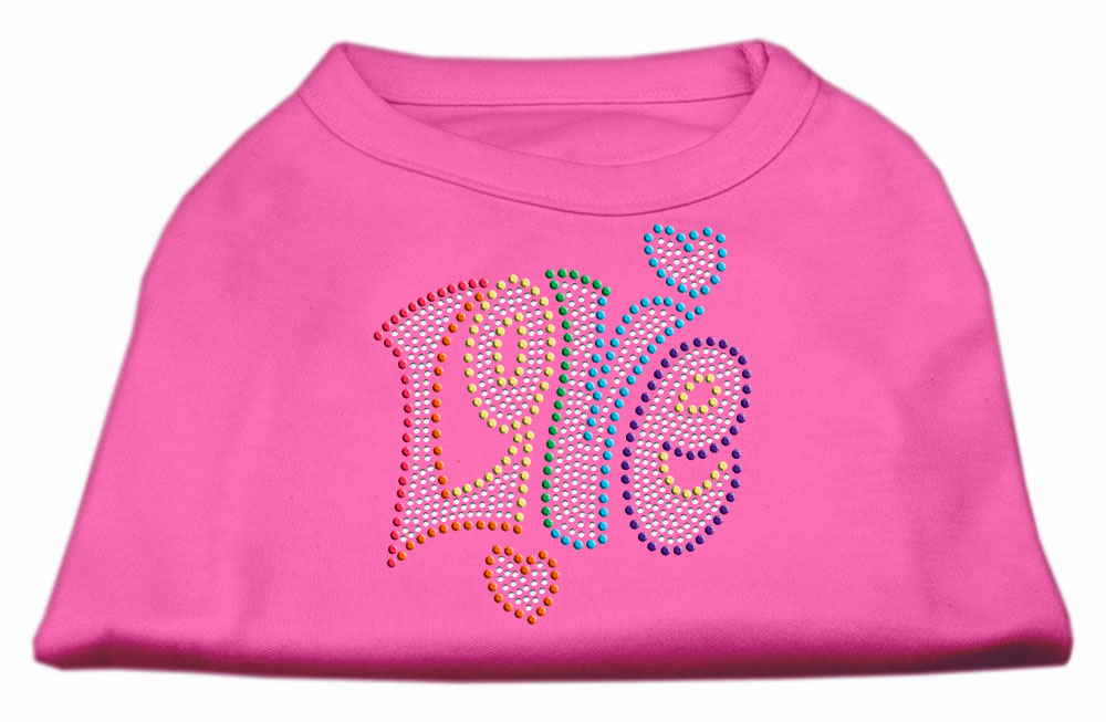 Mirage Pet 52-96 SMBPK Technicolor Love Rhinestone Pet Shirt, Bright Pink - Small