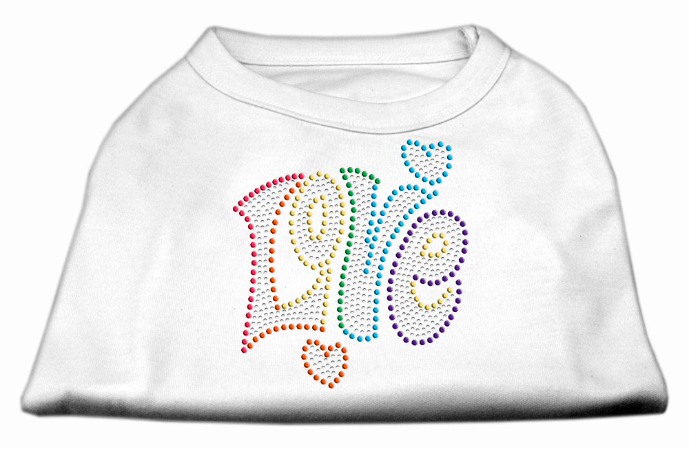 Mirage Pet 52-96 XSWT Technicolor Love Rhinestone Pet Shirt, White - Extra Small