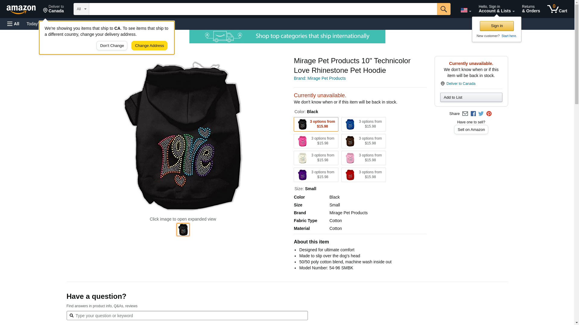 Mirage Pet Products 10" Technicolor Love Rhinestone Pet Hoodie, Small, Black
