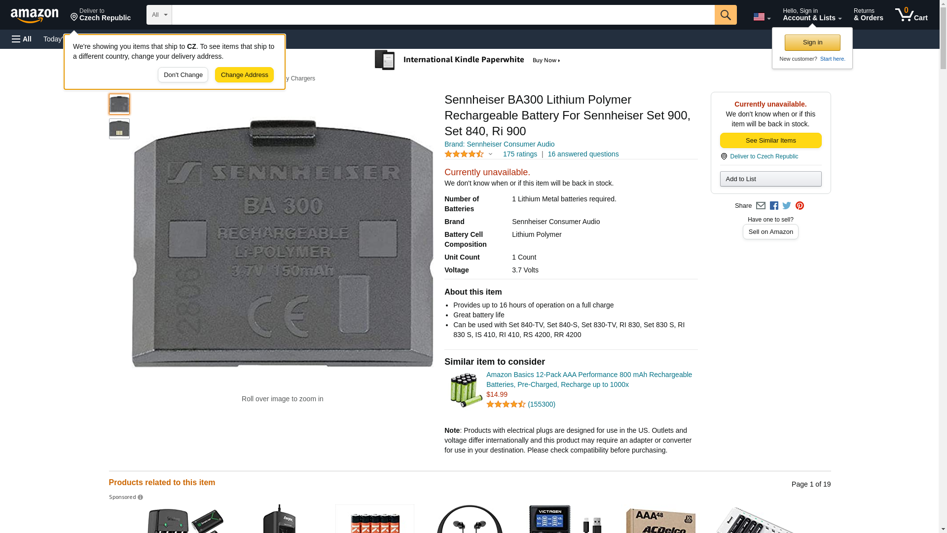 Sennheiser BA300 Lithium Polymer Rechargeable Battery For Sennheiser Set 900, Set 840, Ri 900