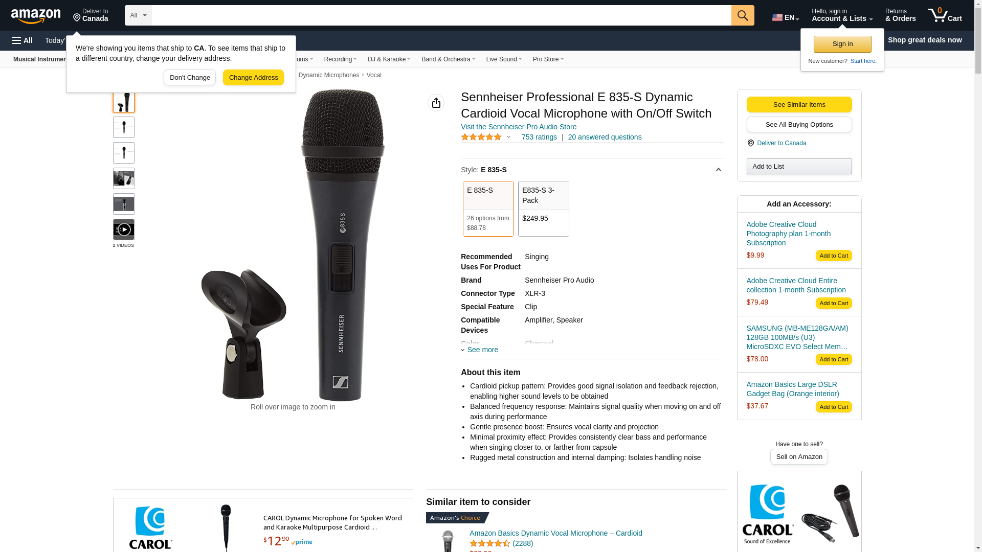 ![]() Performance Audio | SEN E835S | 1 | 2 | 1 | 1 @ $99.95 |