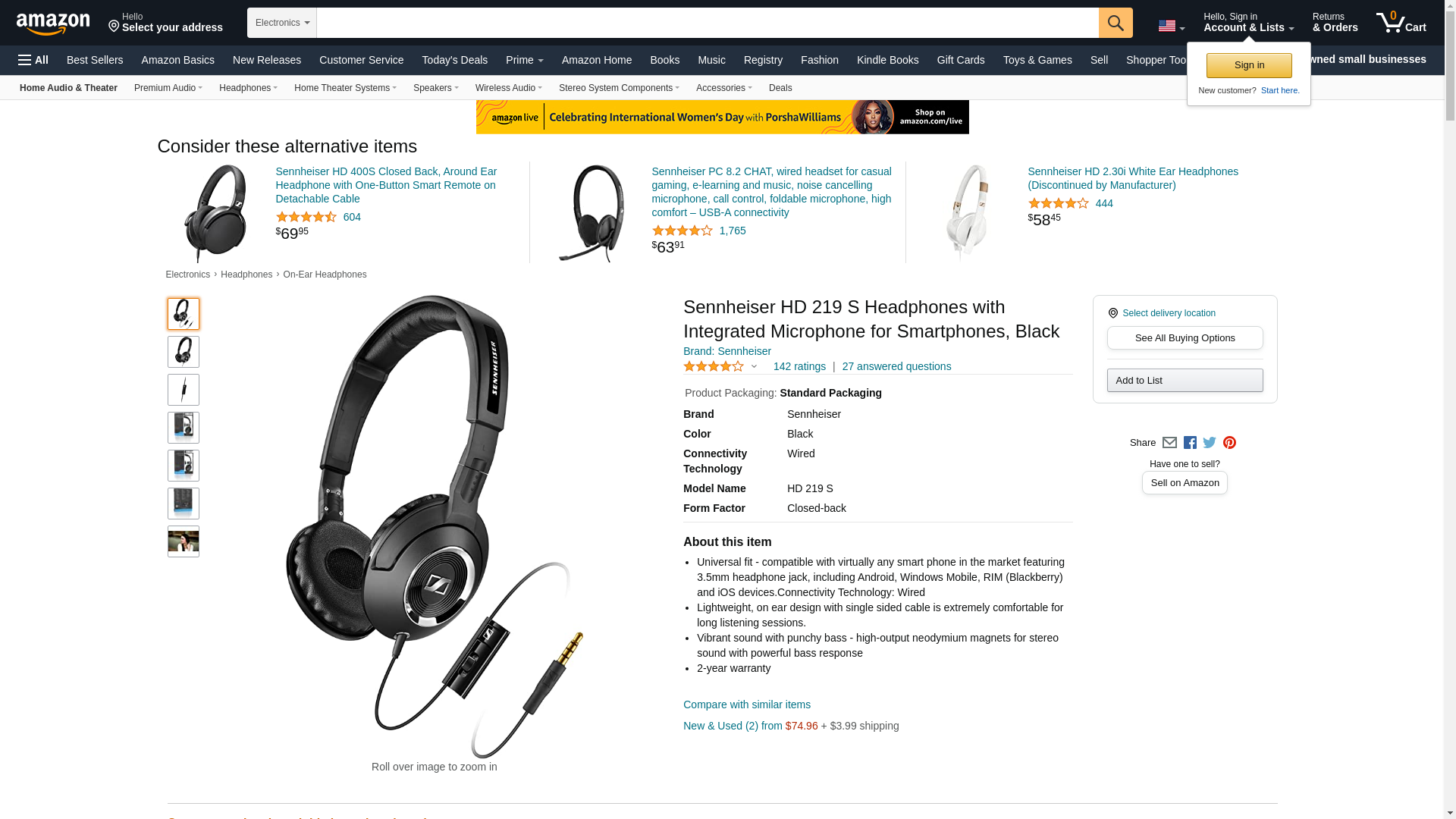 Sennheiser HD 219 S Headphones with Integrated Microphone for Smartphones, Black. Universal fit - compatible with vir...