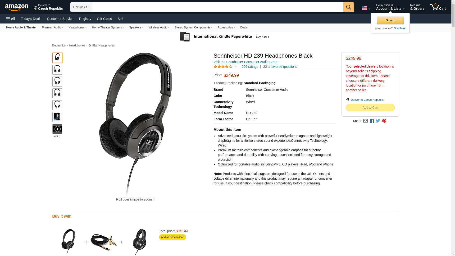 Sennheiser HD 239 Headphones Black. Advanced acoustic system with powerful neodymium magnets and lightweight diaphrag...