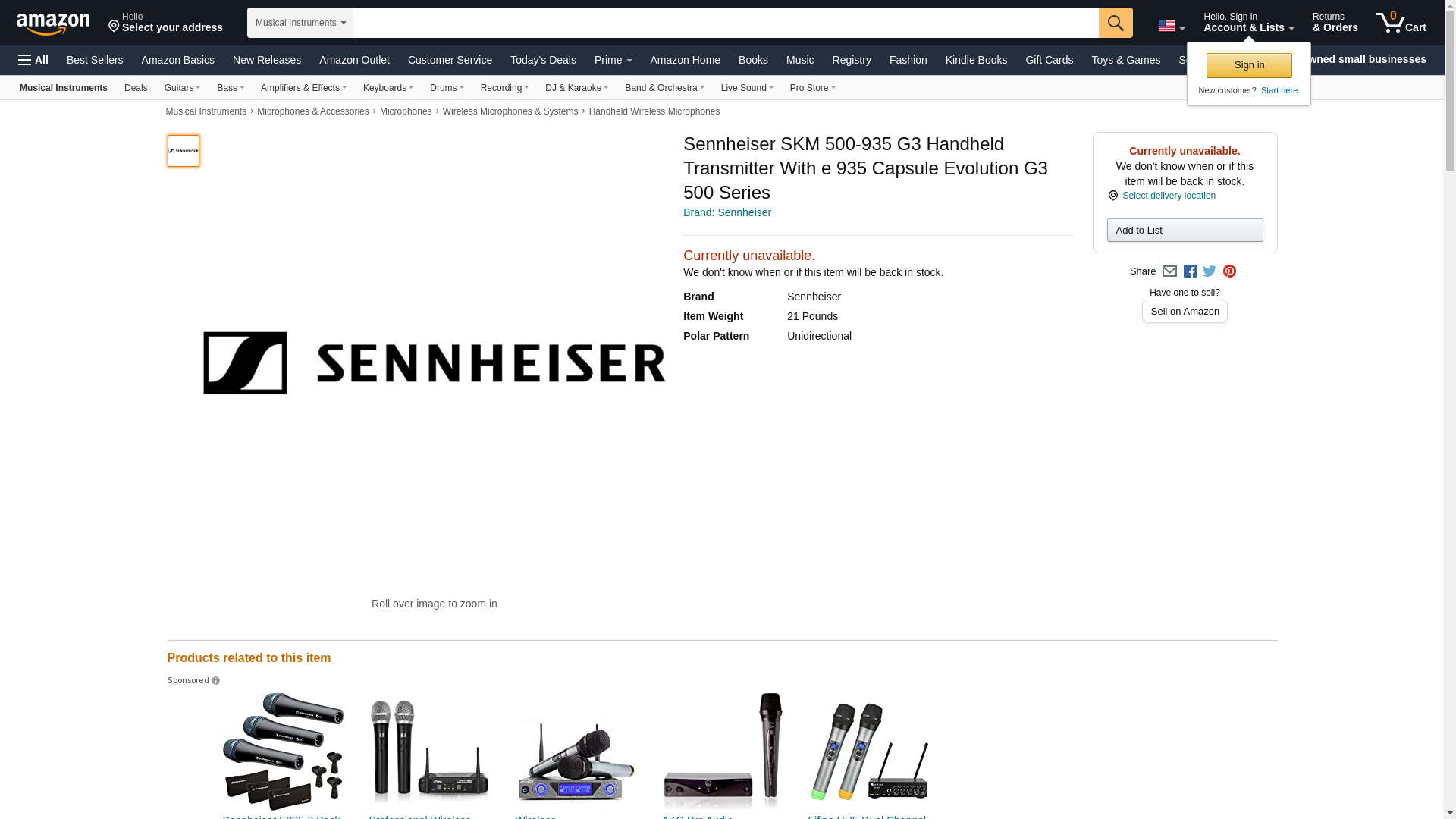 Skm500935g3-A/Handheld Transmitter With E935 Cardioid Dynamic Capsule, Mzq1 Mic
