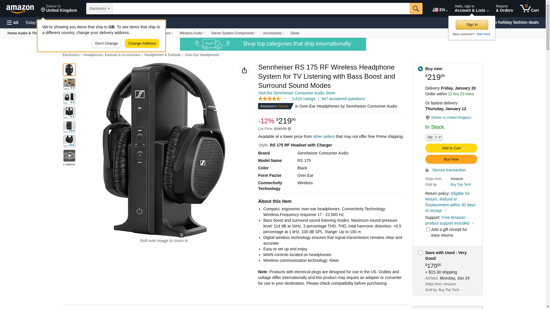 Sennheiser RS 175 RF Wireless Headphone System. Closed back, circumaural headphone system with excellent digital wire...
