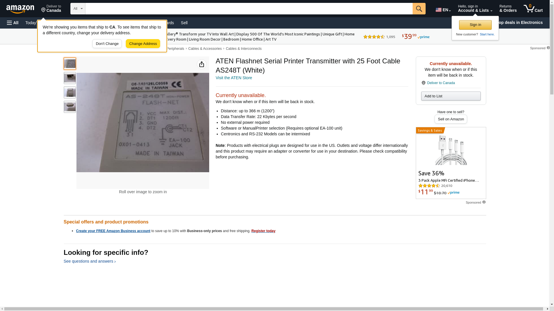 ATEN Flashnet Serial Printer Transmitter with 25 Foot Cable AS248T (White)