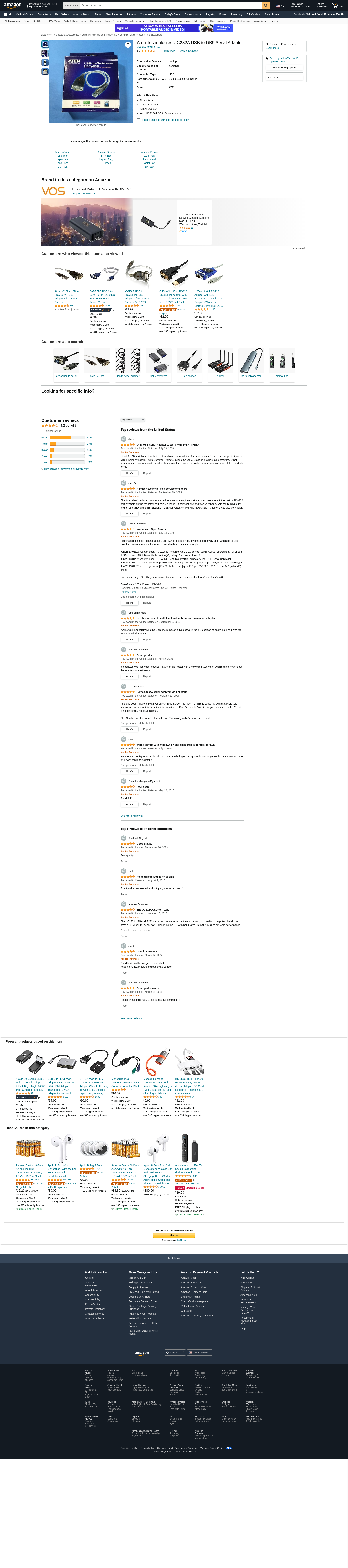 Aten Technologies UC232A USB to DB9 Serial Adapter