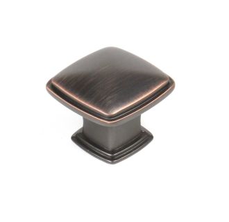 Product Features: Traditional square style cabinet knob; Finished in Oil Rubbed Bronze with Highlights; Length: 1.25"; Width: 1.25"; Made of zinc;