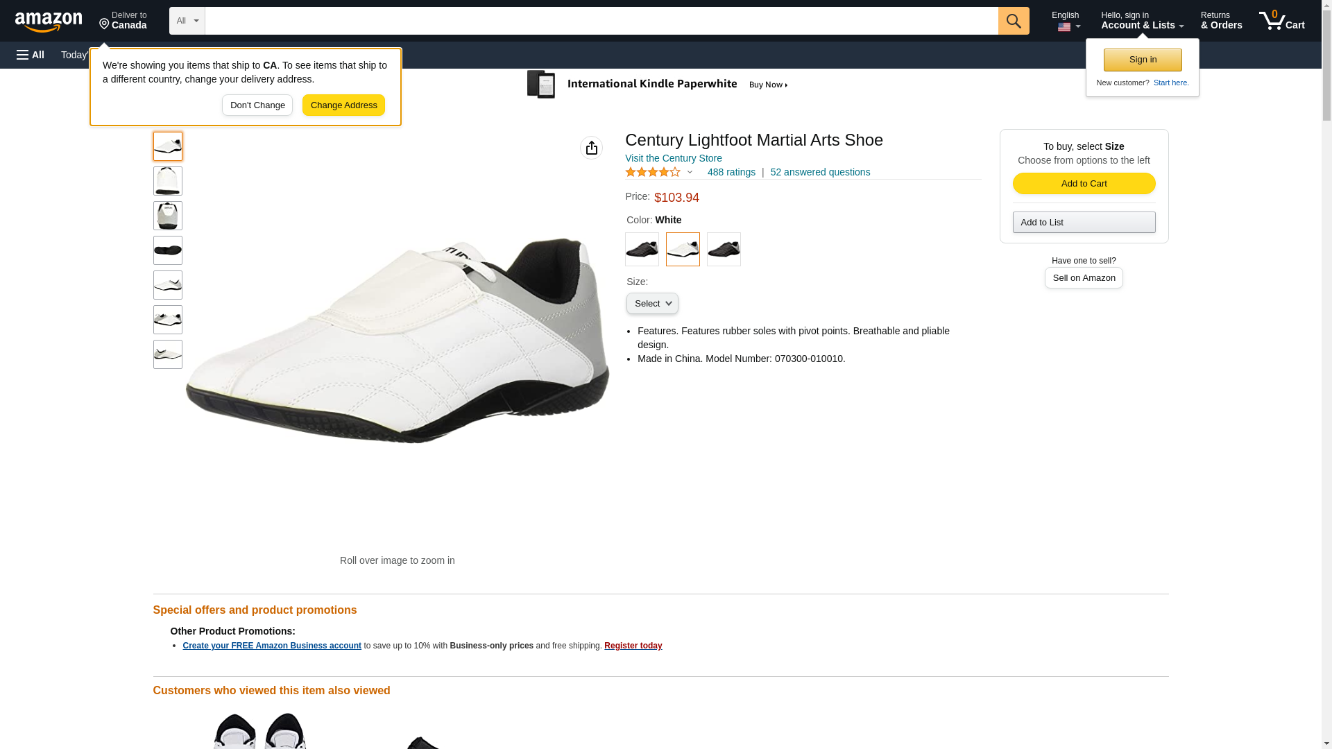 <b>CENTURY LIGHTFOOT MARTIAL ARTS SHOE WHITE</b> <br /> <br /> Century Lightfoot shoes are perfect for martial arts and every day training. <br /> <br /> Features: <br /> *Specially constructed to be lightweight and flexible. <br /> *Outside soles are optimized for gripping the floor. <br /> *Rubber sole features pivot point for enhanced footwork. <br /> *Ventilation design helps keep feet cool and comfortable during use. <br /> *Shoes are made of long lasting synthetic leather <br /> <br /> Shoes are available in 3 different colors; Black/White, Black/Pink, and White/Black