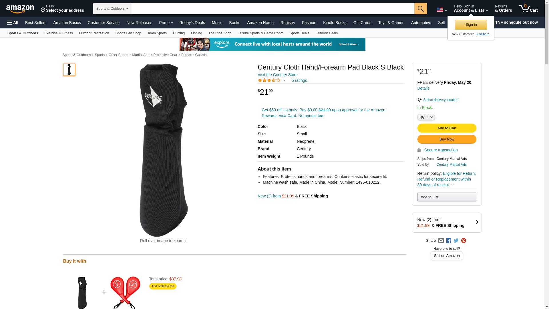 Century\xae Cloth Hand/forearm Pad - Black /Small