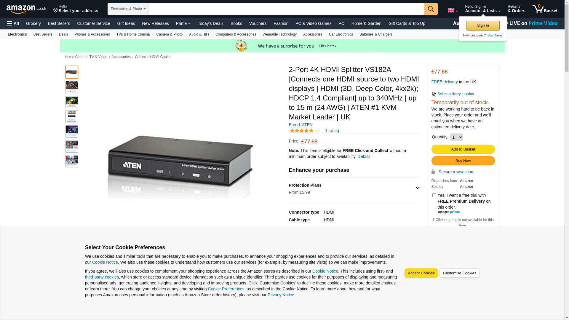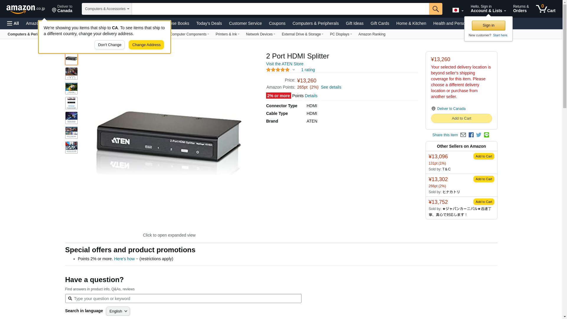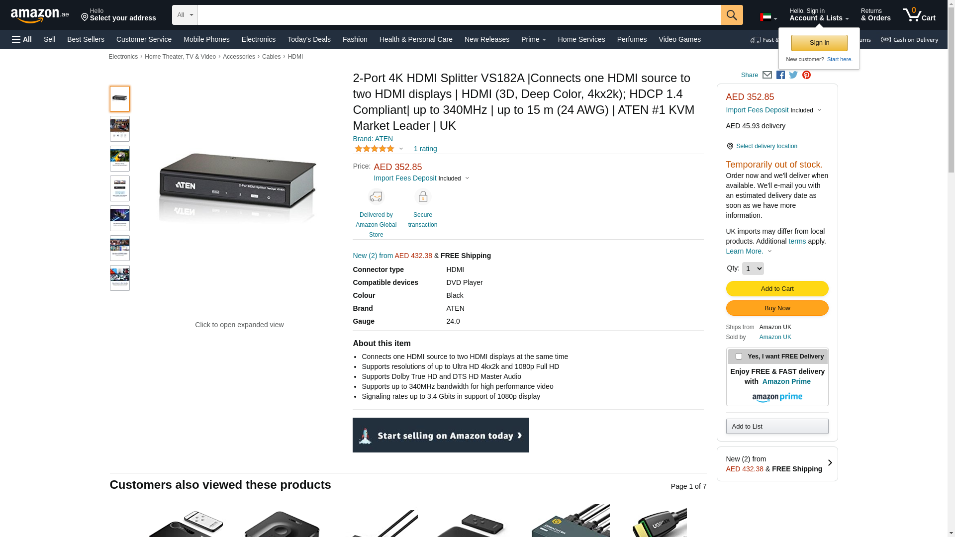 ATEN Technology VS182A aten Technologies vs182a 2 Port hdmi Splitter aten Technologies vs182a