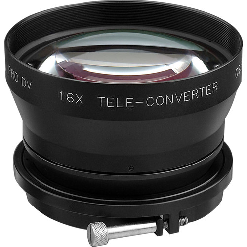 Century Lens Accessories for JVC GY-HD110U & 100U ProHD Camcorders: 1.6X LC Tele Converter... Extend the reach of your zoom without exposure loss. The Century 1.6X Tele-Converter is a clampon front-mounted accessory that also provides greater telephoto reach. Use it to instantly shift the focal length range of your camera in the telephoto direction. The perfect tool when it's inconvenient, dangerous or impossible to move as close to the subject as you'd like. 85mm clamp ring included. Century Pro Series HD accessories offer quality professional lens add-ons designed to extend the capabilities of your lenses. They help you go wider, reach further, and movein closer than the lens alone allows. The superb Century optics provide the finest professional images. These state-of-the-art lenses minimize chromatic aberrations and unwanted distortion and produce HD quality images that are ultrasharp edge-to-edge.