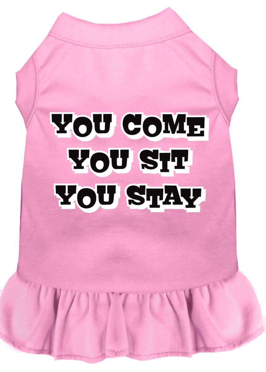 Mirage Pet Products 58-18 XLLPK You Come, You Sit, You Stay Screen Print Dress, X-Large, Light Pink