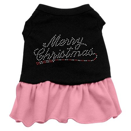 Mirage Pet Products Merry Christmas Rhinestone 12-Inch Pet Dress, Medium, Black with Pink