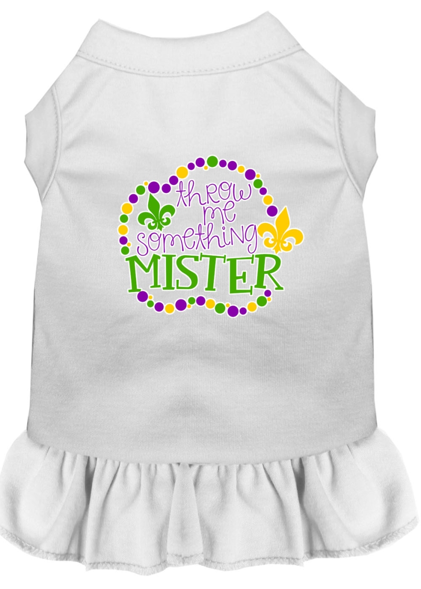 Mirage Pet 58-448 WTMD Throw Me Something Screen Print Mardi Gras Dog Dress, White - Medium